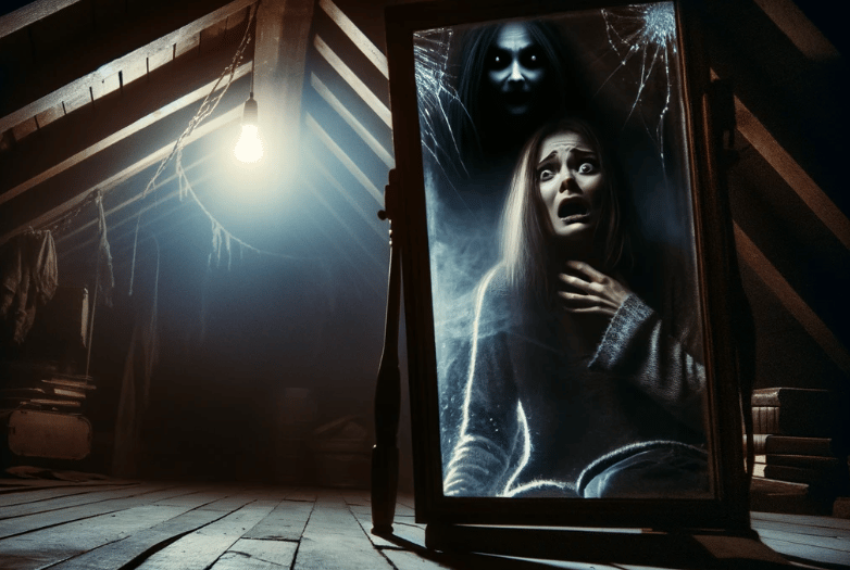 When I reached the attic, I saw an old mirror in the corner, its surface covered in dust. I wiped it clean, and that’s when I saw her—a woman, pale and terrified, staring back at me from inside the mirror. Before I could react, her eyes locked onto mine, and I heard her voice, barely a whisper, saying, “Please… help me.” Then, out of the darkness behind her, a shadowy figure emerged, pulling her back into the abyss. The mirror cracked, and the house seemed to come alive, shaking violently. I ran, not daring to look back, but even now, I can still hear her voice, pleading for help in the dead of night.