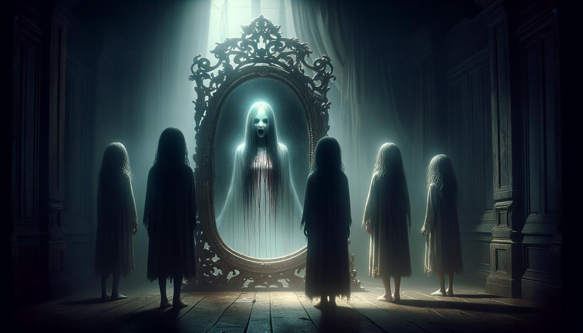 In the darkest corners of folklore, Bloody Mary’s name sends shivers down the spine. Stand before a mirror, utter her name thrice, and face a bloodied spirit twisted in torment. Her wrath is bound to those who dare call her. Will you meet her gaze, or be haunted forever by the specter in the glass?